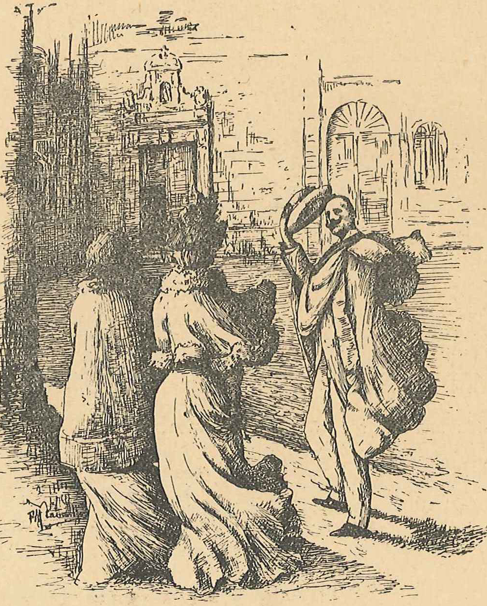 En la iglesia de la Merced se celebraba el fúnebre novenario de las ánimas benditas. Las devotas venían luchando con las celliscas que les ceñían la ropa en fugaces revelaciones o las sofaldaban en momentos con su furiosa y gélida irrespetuosidad; los hombres, arrebozados en sus capas, se defendían bizarramente de un remolino, y así, borrones tácitos, unas y otros conseguían, por último, sumirse en la oquedad suntuosa del templo. Era, en aquella inclemente tarde de Noviembre, en que ni nevaba ni llovía y las dos cosas, muy triste la novena. La calle de Toledo veíase toda, solemne, amplia, blanquecina, barrida por el viento, relucientes los guijarros, llorosos los tejaroces, y allá lejos, lejos, la puerta medieval, la granítica puerta, se barruntaba siempre abierta, siempre expedita para que por allí se vayan los que no vuelven…