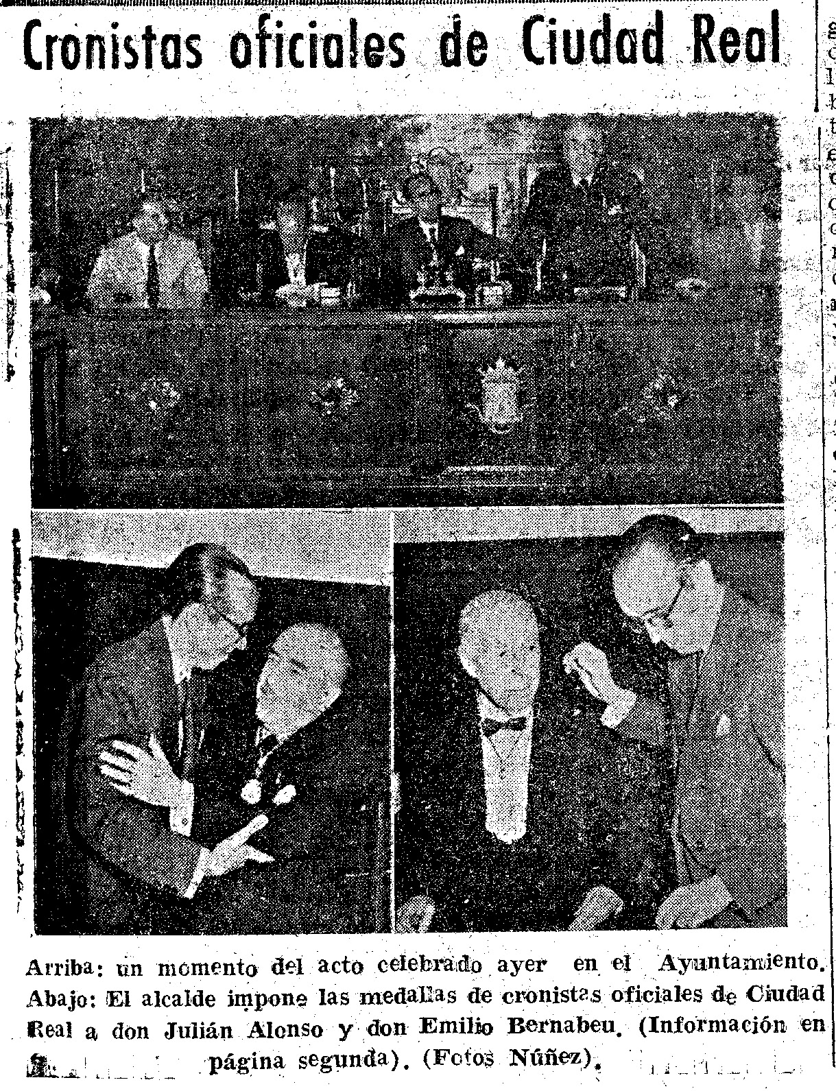 Aunque en nuestra provincia la figura del Cronista Oficial se creó en el siglo XIX, en Ciudad Real no fue hasta 1954 cuando el ayuntamiento de nuestra ciudad nombra sus dos primeros cronistas oficiales: D. Emilio Bernabeu Novalbos y D. Julián Alonso Rodríguez. El acto de imposición de la medalla de cronistas oficiales, se celebró el domingo 4 de septiembre de 1955, en el salón de actos del desaparecido ayuntamiento capitalino.
